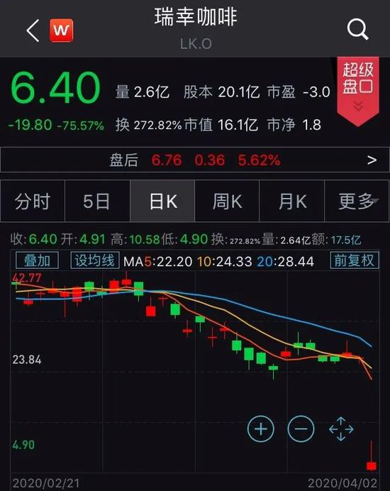 瑞幸咖啡在4月2日披露,公司首席运营官刘剑等多名员工伪造了高达22亿元人民币(约合3.12亿美元)的交易额,该公司正对此展开内部调查。5天之后,瑞幸咖啡宣布临时停牌。停牌之前,瑞幸咖啡的股价已较1月中旬时的上市最高价下跌了91%。