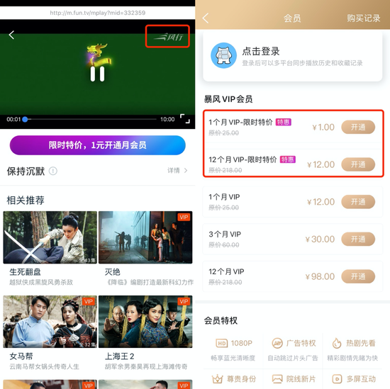 Tech星球注意到,现在的暴风影音客户端已经重新恢复运营,视频资源均来自与风行视频,同时,暴风影音仍保留有视频付费会员,目前最低仅为1元每月,是所有视频网站中的最低价格。