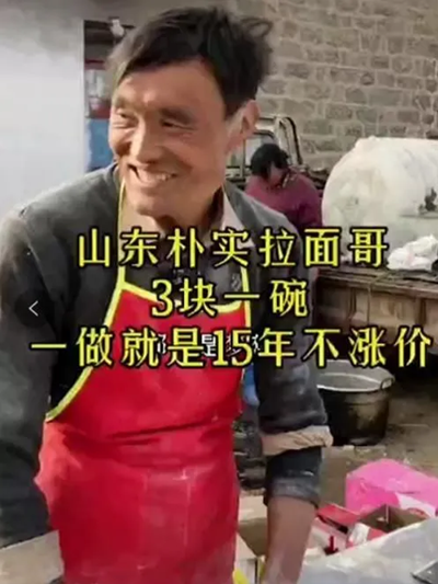 近期,因“一碗拉面3元,15年不涨价”而爆红的山东“拉面哥”,竟成了不少人眼中的摇钱树。