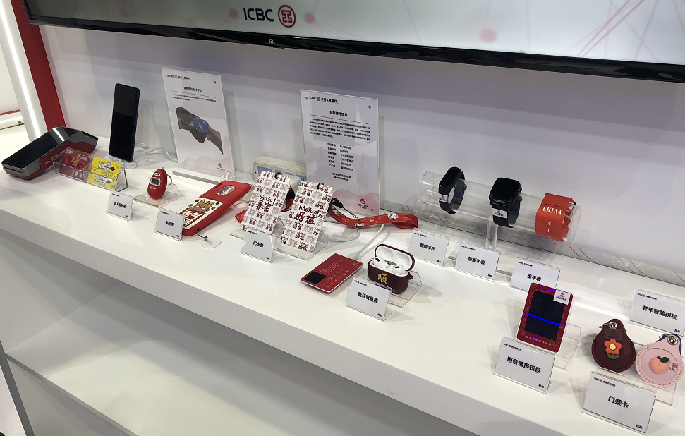 数字人民币硬件钱包除了有可视化芯片卡形态外,目前银行还开发出了多款异形硬件钱包,如工行此次就展出包括老年人拐杖、老年报时器、门禁卡套、大屏语音播报钱包、学生手表等异形硬件钱包。