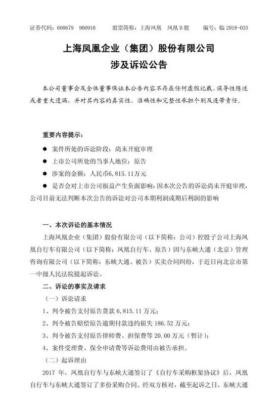 而早在8月31日,上海凤凰也发布诉讼公告称,其控股子公司上海凤凰自行车向法院提起诉讼,要求ofo赔付货款6815.11万元。